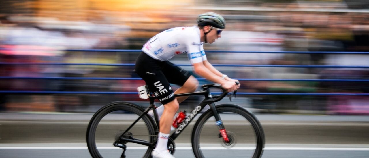 Also, das Vorderrad ist sehr, sehr viel relevanter, was die Aerodynamik betrifft. Das Hinterrad macht eigentlich kaum noch was. Viel ist es nicht, aber… Naja, wenn es um Sieg und Niederlage geht, wird alles mitgenommen. Zumal… dieser Reifen sonst keine Nachteile hat. Der fährt sich ganz normal.
