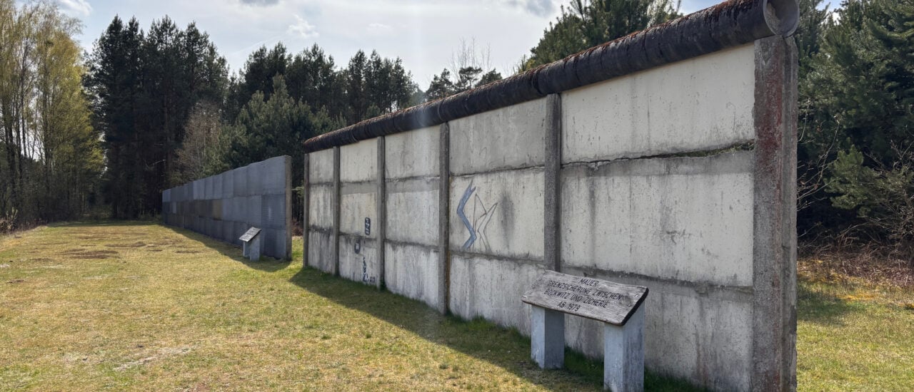 Für die heutige Folge habe ich mich entschieden, dem Impuls von Michael zu folgen und bin auf Spurensuche gegangen an einem Grenzort. Ich wollte mir angucken, wie die ehemalige Grenzregion heute im Jahr 2026 aussieht, eben weil ich so konkret da noch nie war. Und ich wollte vor allem Menschen treffen, die mit mir darüber sprechen. Also bin ich in den Norden Sachsen-Anhalts gefahren, genauer in den Altmarkkreis Salzwedel. Mein Ziel: der Grenzlehrpfad des Grenzmuseums Birkwitz-Zicherei. Der befindet sich wirklich mitten im Wald, weshalb ich erst sogar so ein bisschen vorbeigefahren bin. Und naja, von der Landstraße muss man nämlich direkt einbiegen auf einen Waldweg, dann ein Stück lang fahren, und dann steht da plötzlich rechts am Wegrand so eine alte schwarz-rot-goldene Grenzsäule. Kurz darauf kommt der Parkplatz.