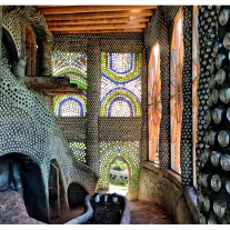 Ein Earthship ist ein Haus, das in die Erde eingelassen zu sein scheint und das unter anderem mithilfe alter Autoreifen gebaut wird. Es kann vollkommen autark sein. Das heißt, es beheizt sich selbst, erzeugt eigenen Strom und hat eine eigene Wasserversorgung.